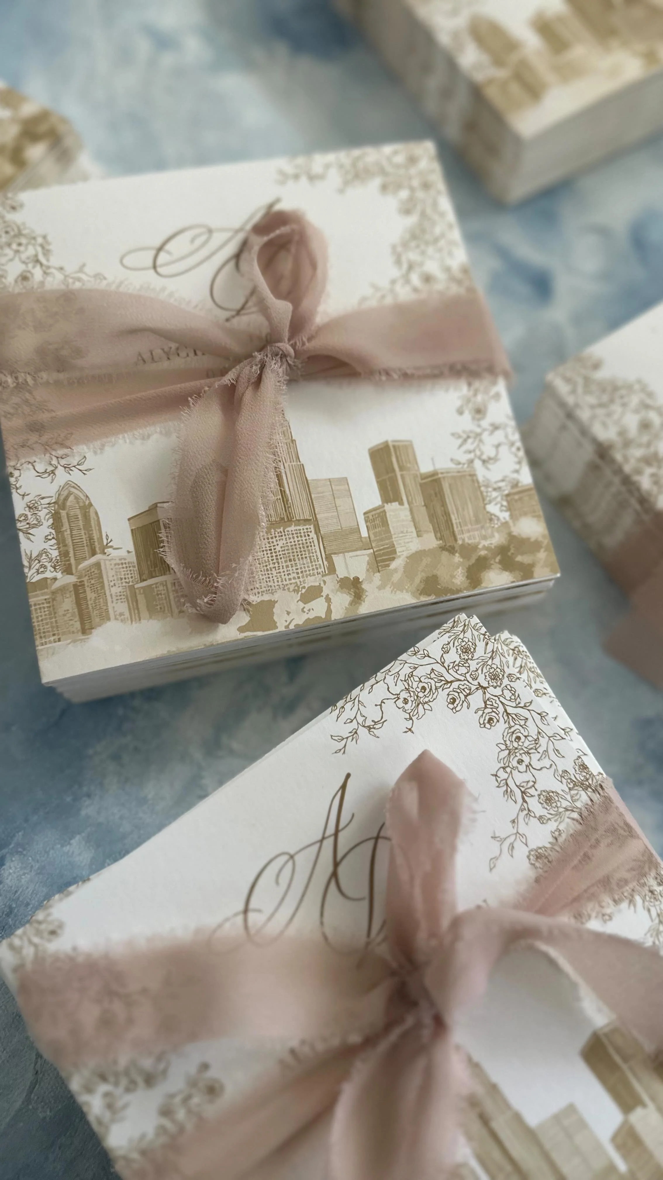 Together, we will create bespoke wedding stationery that reflects your unique love story. From save-the-dates to invitations, menus, and thank-you cards, every detail is crafted to perfection with your vision in mind.
